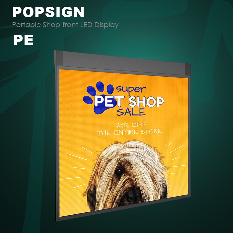 La serie Popsign tiene tres productos que son PA, PB y PD. Tiene las ventajas de tamaño fijo, alto brillo, peso ligero, operación de software portátil y simple y conveniente. La aplicación principal es publicidad en tiendas, bares, restaurantes y otros escaparates, publicación de información, para satisfacer la demanda de los clientes de pantallas LED pequeñas.